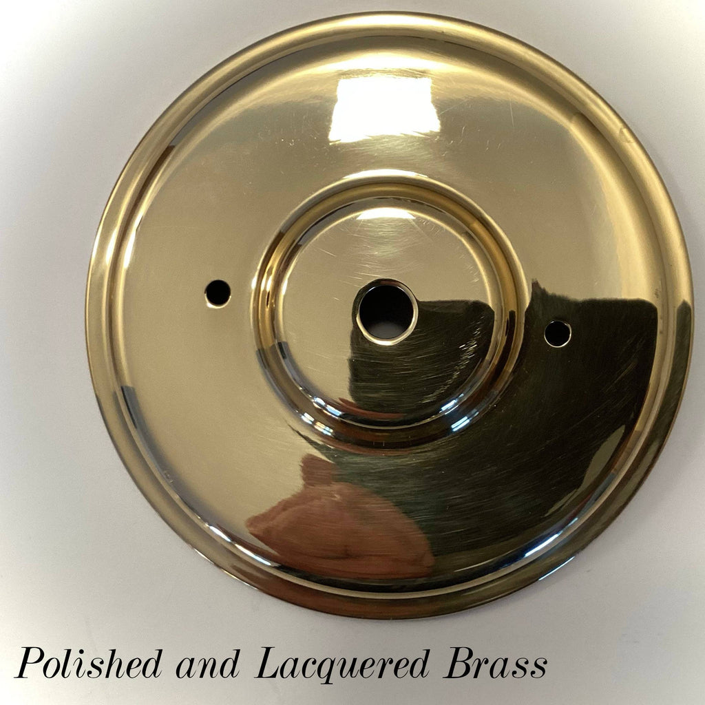 3 穴天井キャノピーは、アンティーク真鍮、ポリッシュおよびラッカー仕上げの真鍮、サテンニッケル、ポリッシュニッケル、オイルラブブロンズ仕上げからお選びいただけます。これらの薄型 3 穴照明器具の天井キャノピーは、照明修理の必需品です。