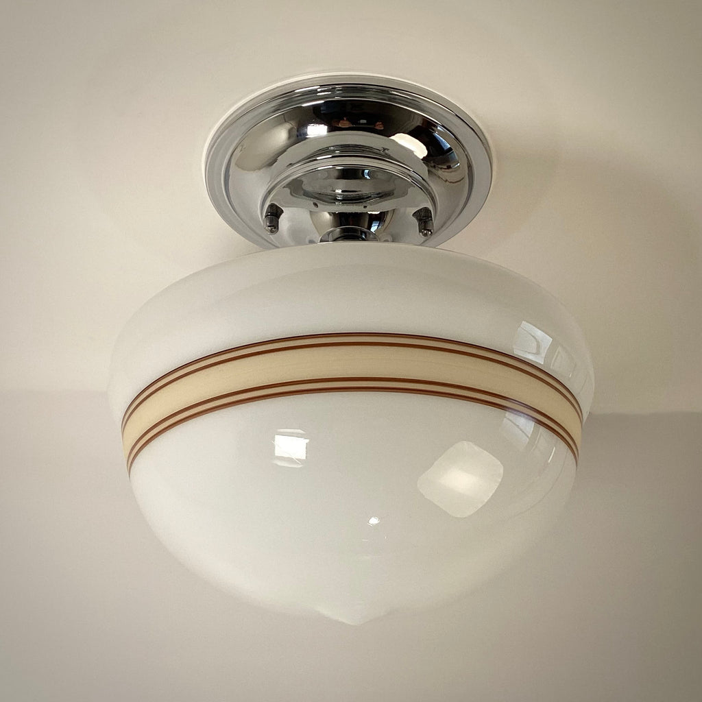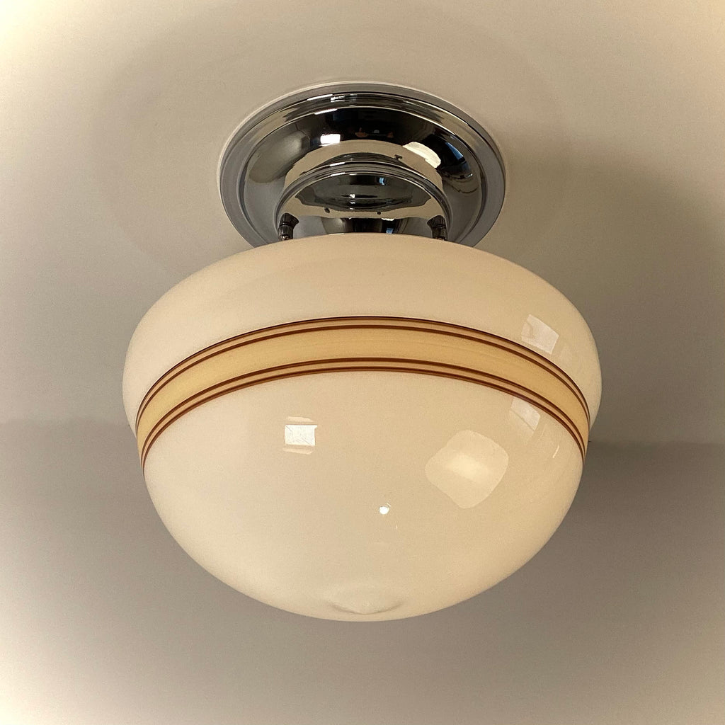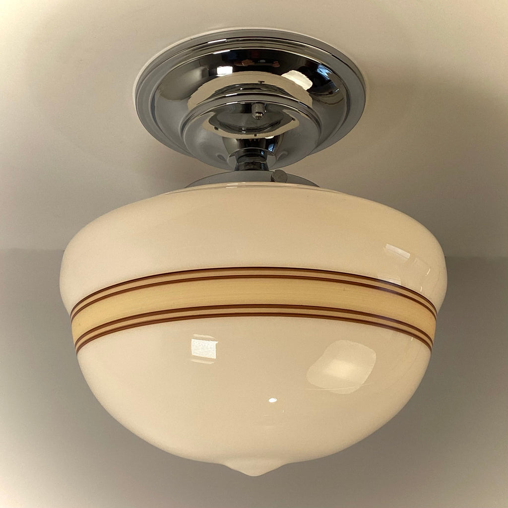 New Mocha & Cream Banded Milk Glass Schoolhouse Ceiling Light